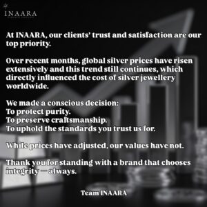 At Inaara, silver jewellery isn’t just made. It’s remembered. From the first touch of metal to the final glint of polish, each piece carries a story—of hands that shaped it, of care poured into it, of meaning waiting to be worn.