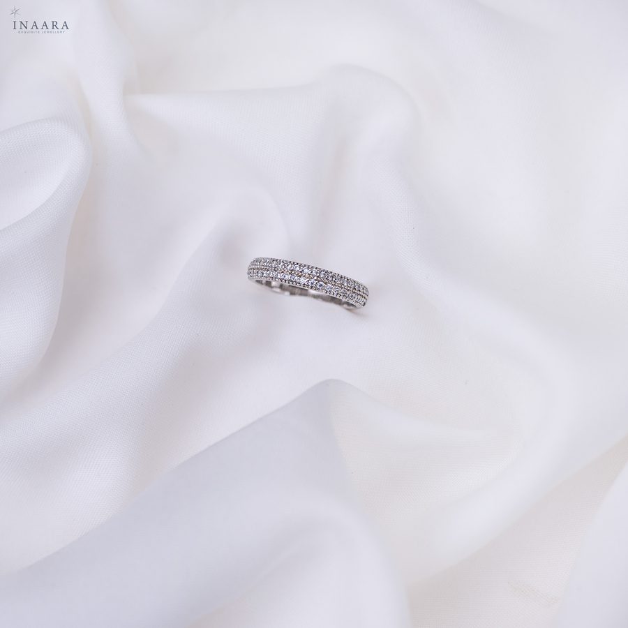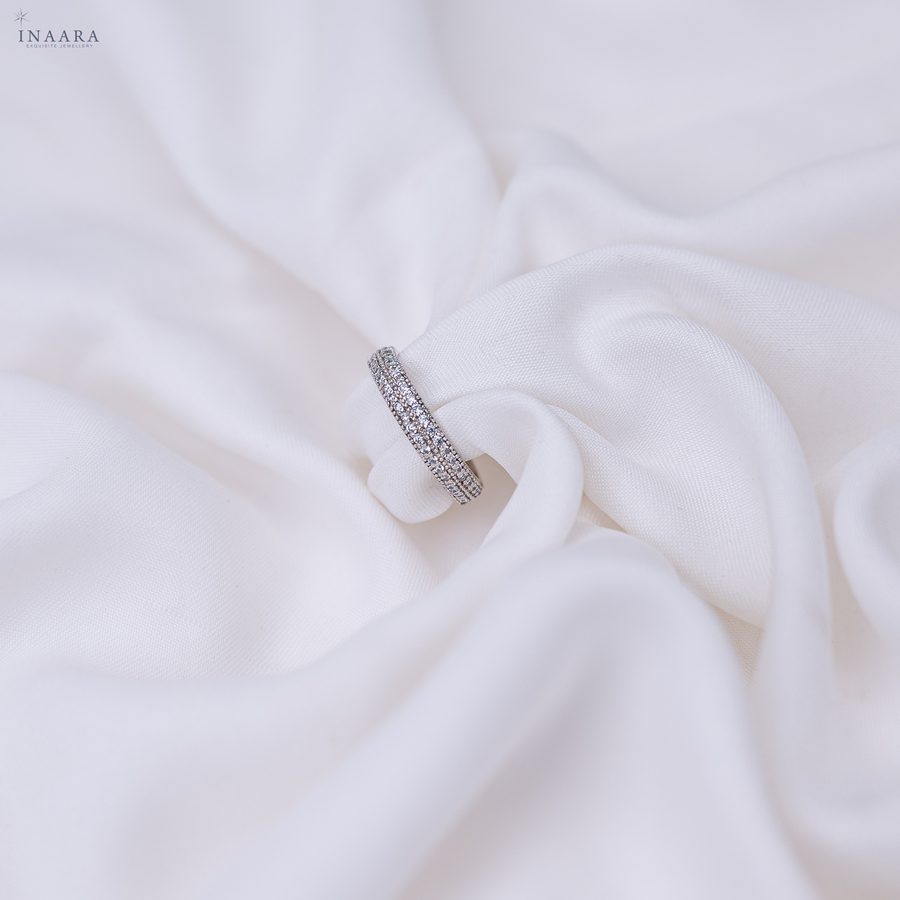 The Duet Band is a celebration of refined beauty and craftsmanship. Two rows of premium, diamond-cut zircon stones shimmer with a brilliance that rivals the finest gems, creating a flawless stream of light around the band. Delicate yet captivating, it’s designed for the woman who embodies sophistication and grace — timeless, radiant, and effortlessly elegant.