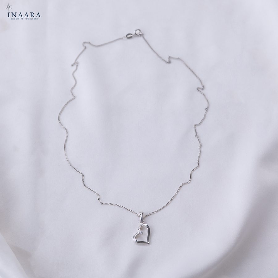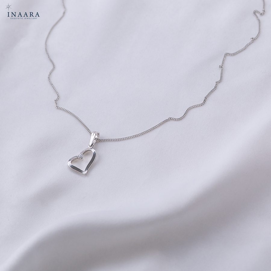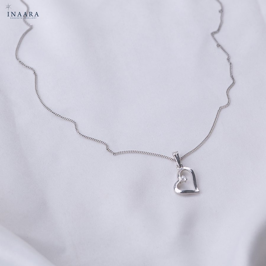 The Halo Heart Pendant by INAARA is a graceful ode to timeless love and refined beauty. Crafted in pure 925 sterling silver, its sleek heart silhouette delicately frames a single diamond-cut zircon that glimmers with celestial charm. Minimal yet mesmerizing, this pendant captures the essence of sophistication — perfect for the woman who adores understated luxury and treasures moments that speak from the heart.
