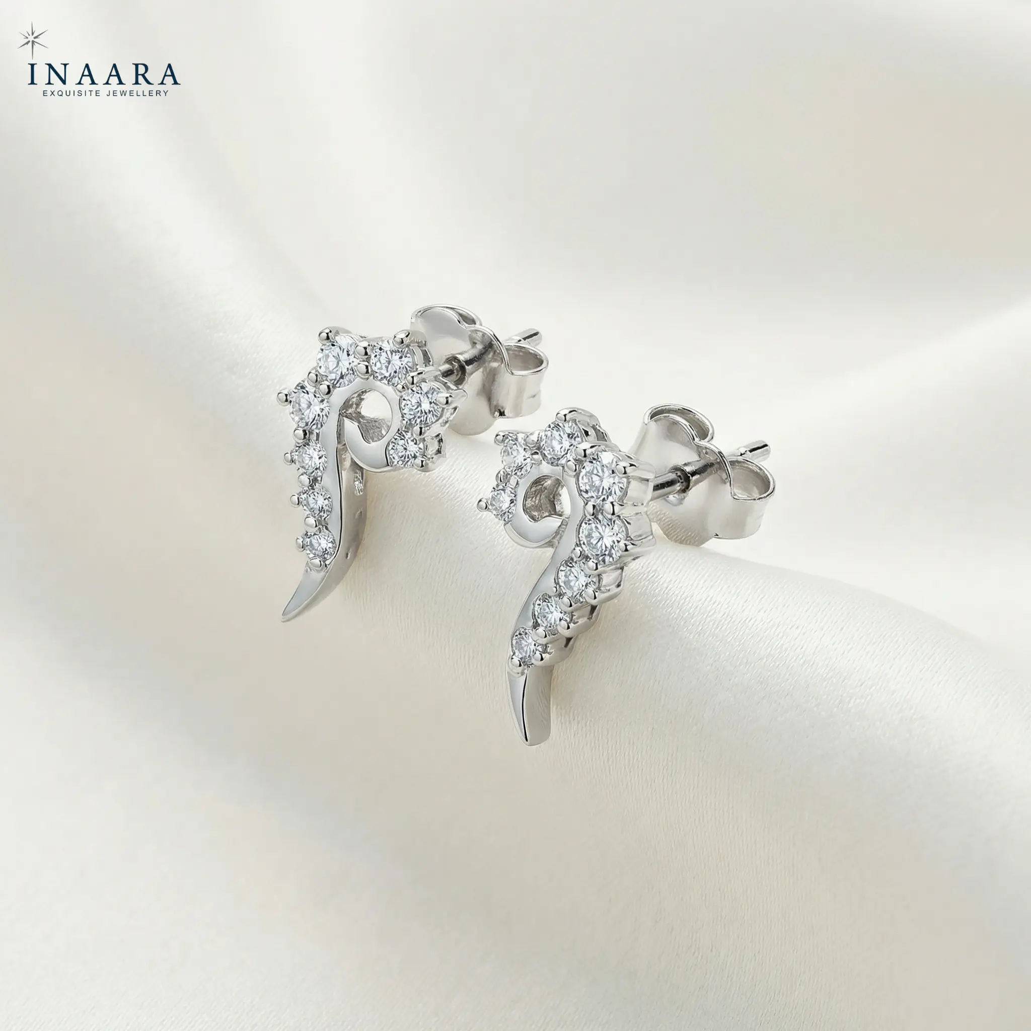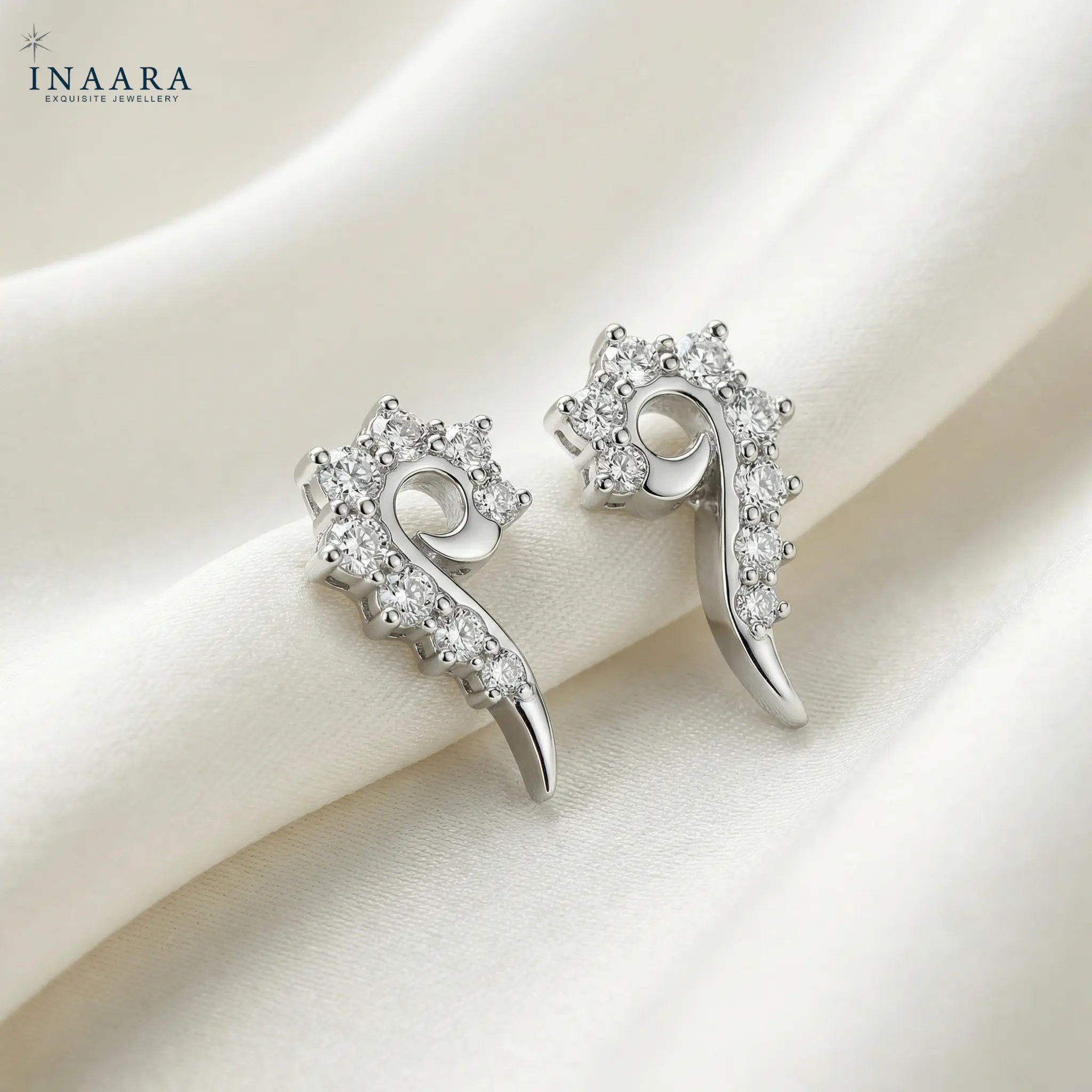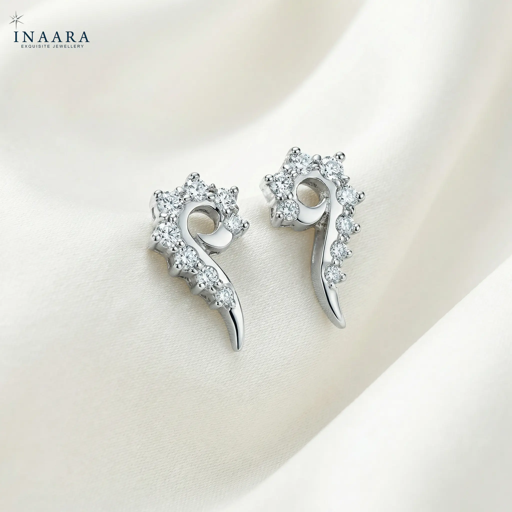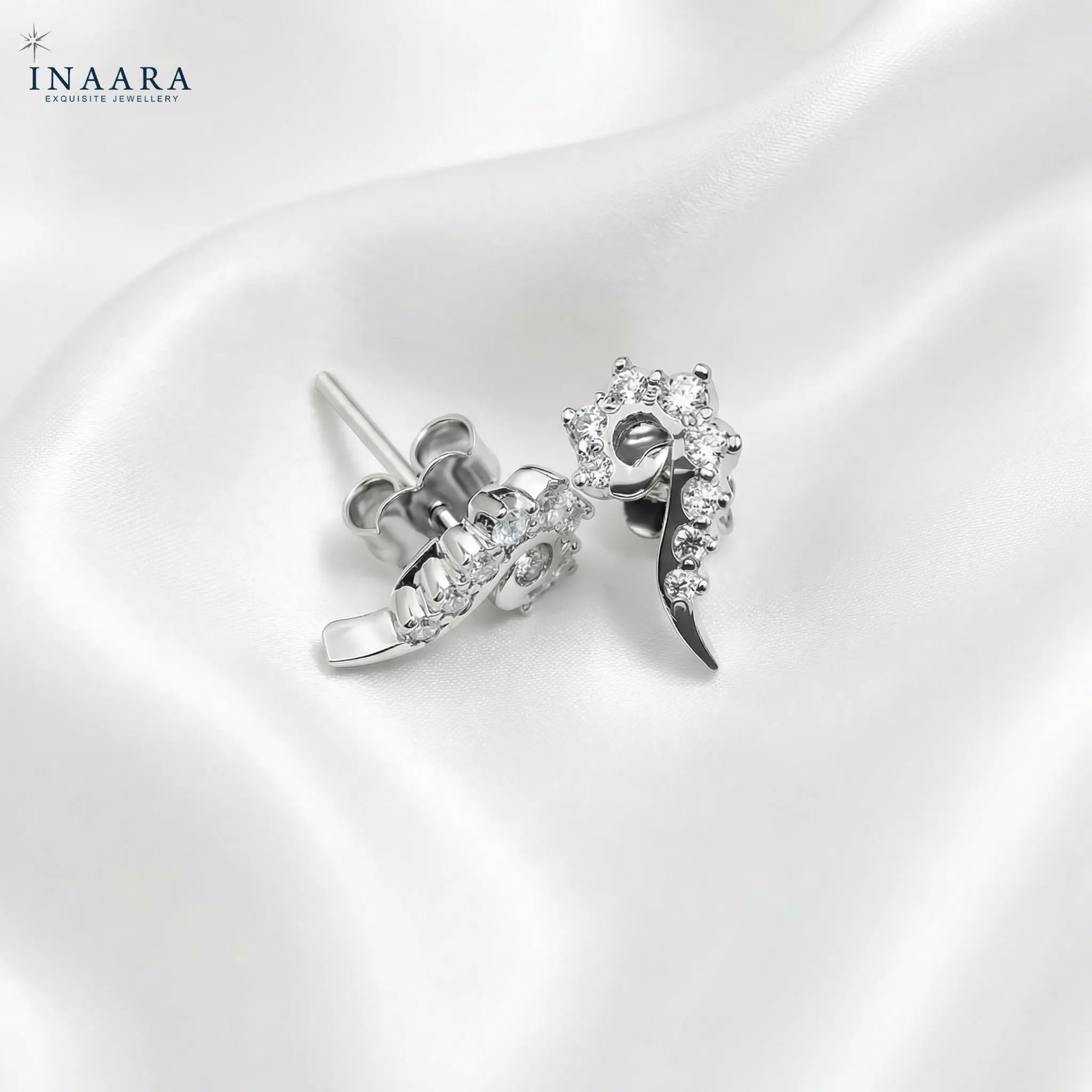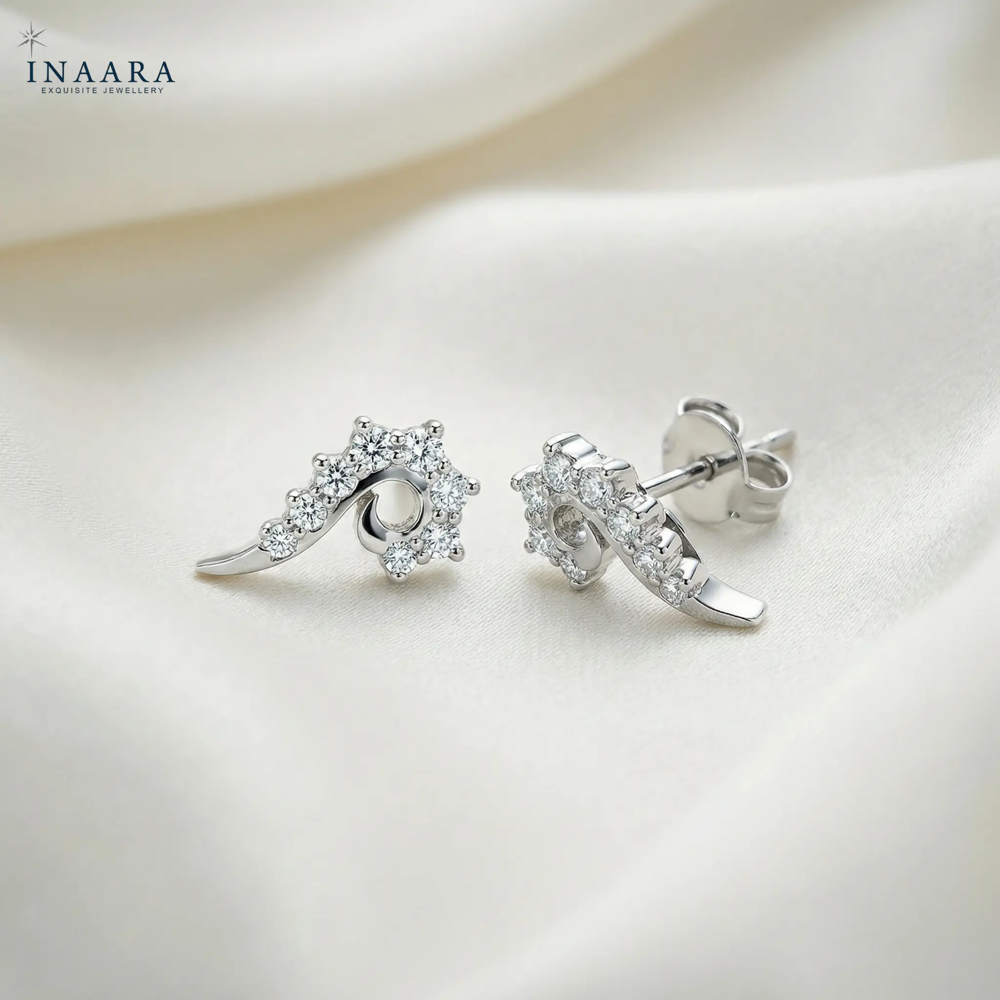 A sculpted swirl of brilliance, designed to look like it was made for a woman with quiet power. These earrings feature a sleek, polished silhouette wrapped in a crown of radiant sparkle—each stone placed to catch light from every angle. Minimal yet magnetic, the design feels effortlessly luxurious: bold enough to be noticed, refined enough to feel timeless. The perfect balance of modern elegance and classic glamour.