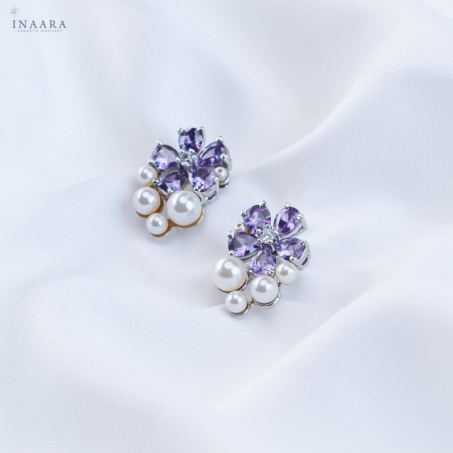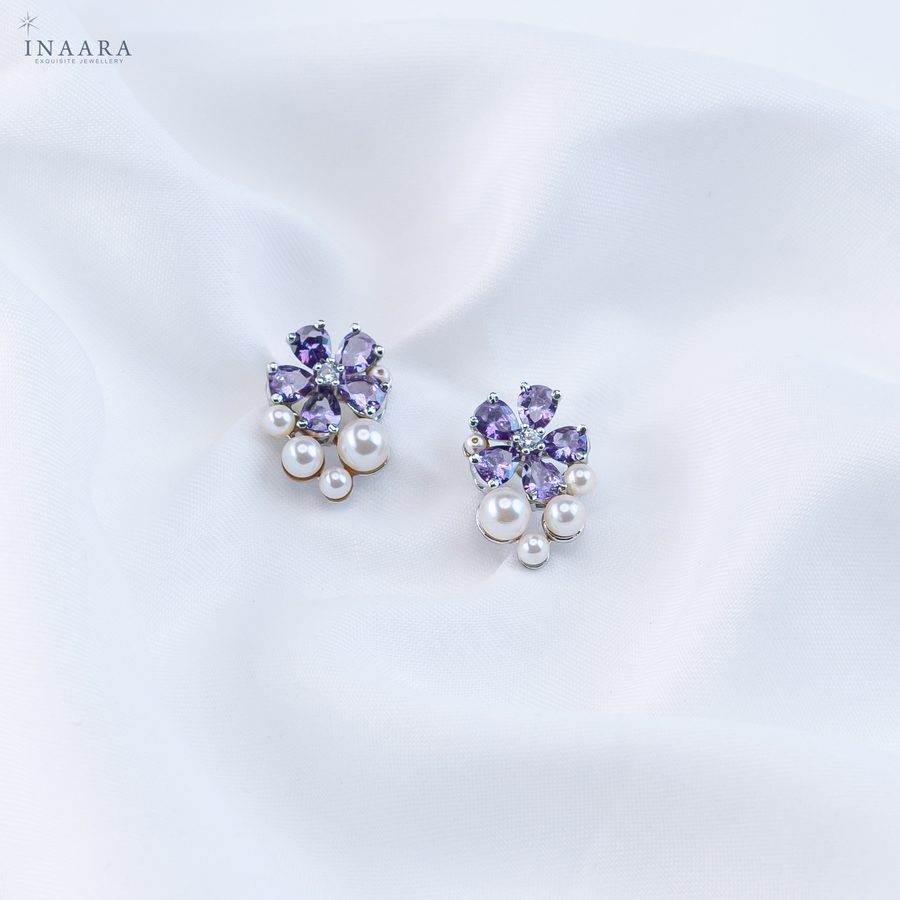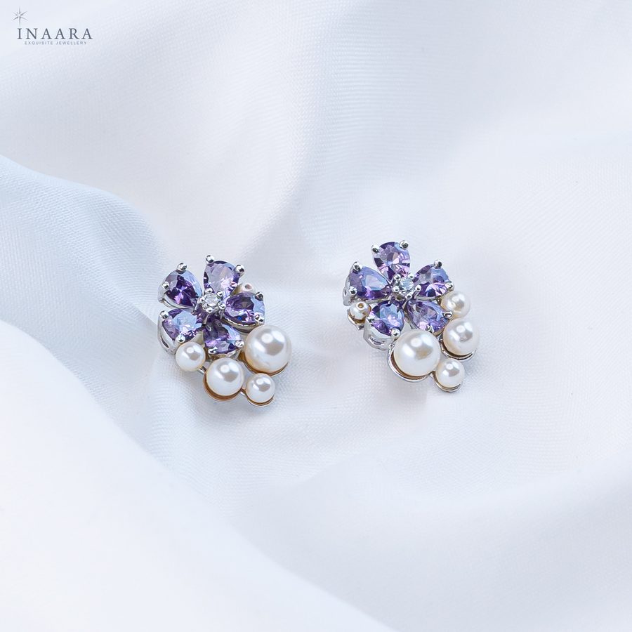 Introducing the Pearl Whisper Earrings—a statement of elite elegance and unparalleled luxury. These magnificent pieces feature a delicate floral array of resplendent purple synthetic tanzanite, meticulously set to surround a perfectly lustrous, hand-selected pearl. They are more than jewelry; they are an aura of sophisticated grace, designed for the discerning individual whose style demands unforgettable allure and premium craftsmanship. Indulge in this exclusive design and elevate your collection.