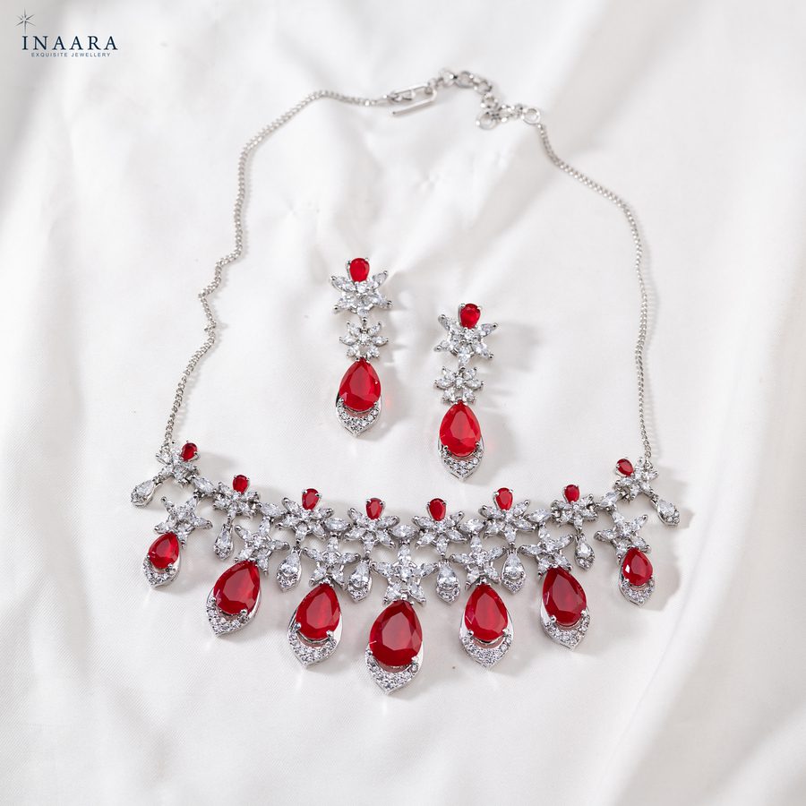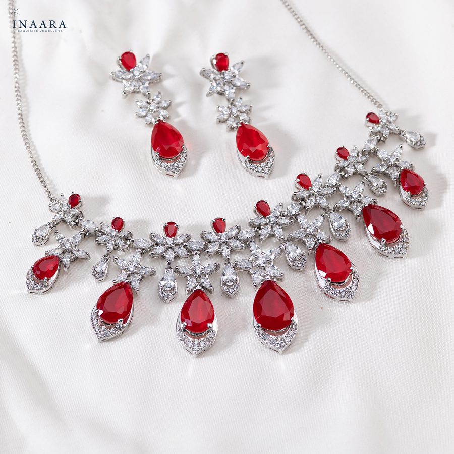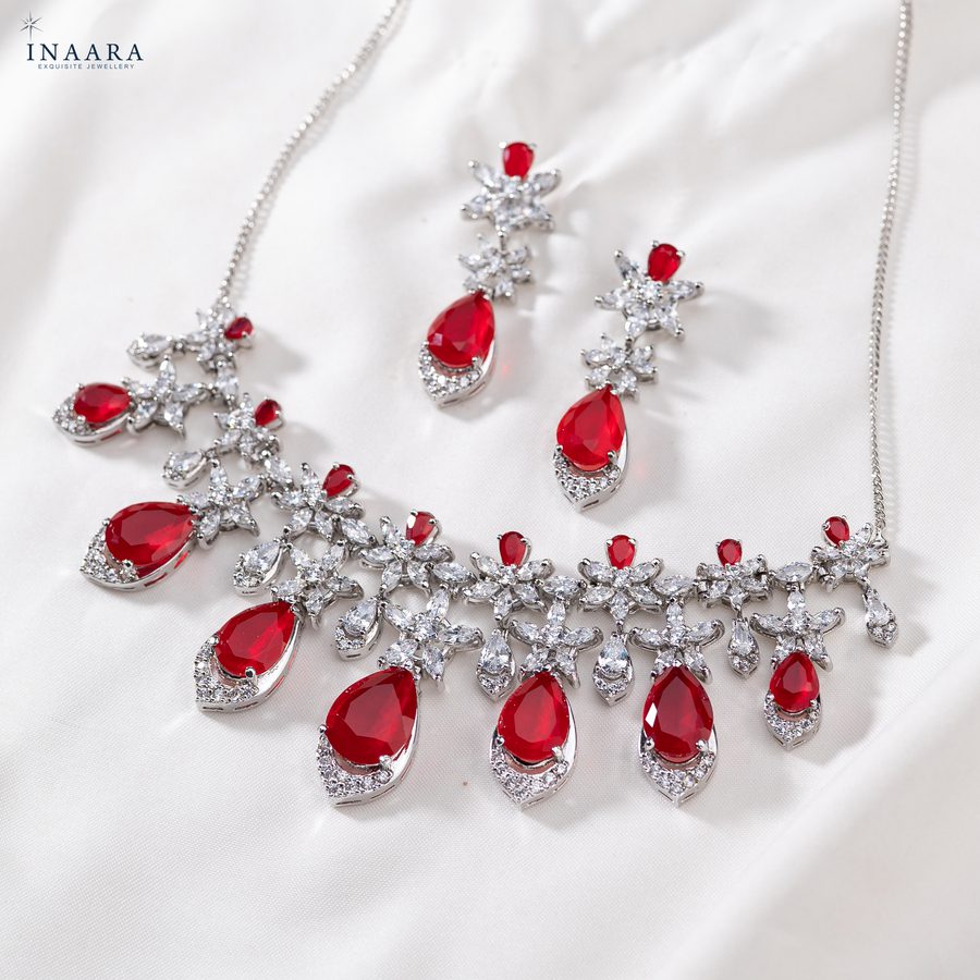 - Synthetic Ruby drops coupled with premium quality zircon;