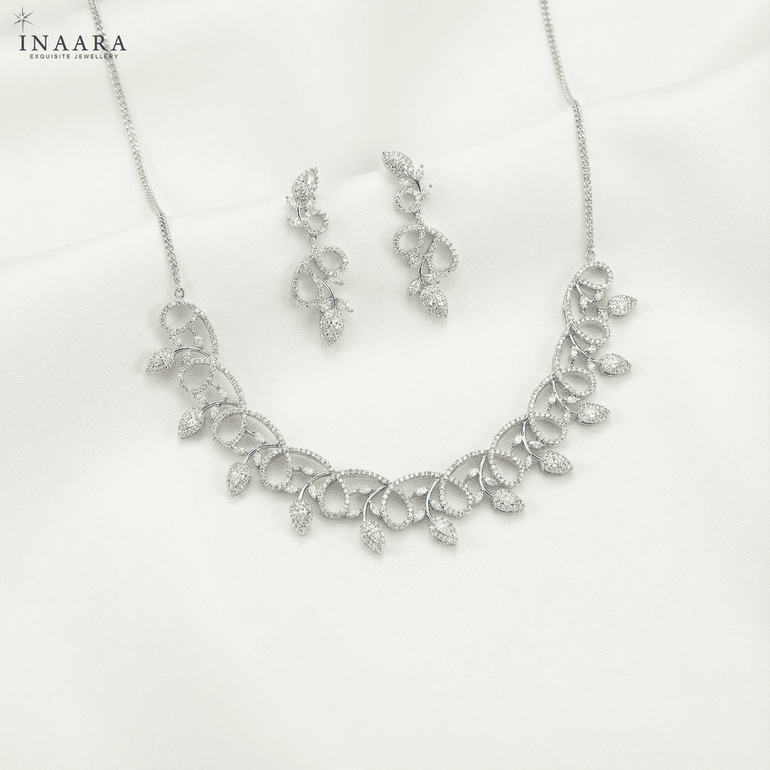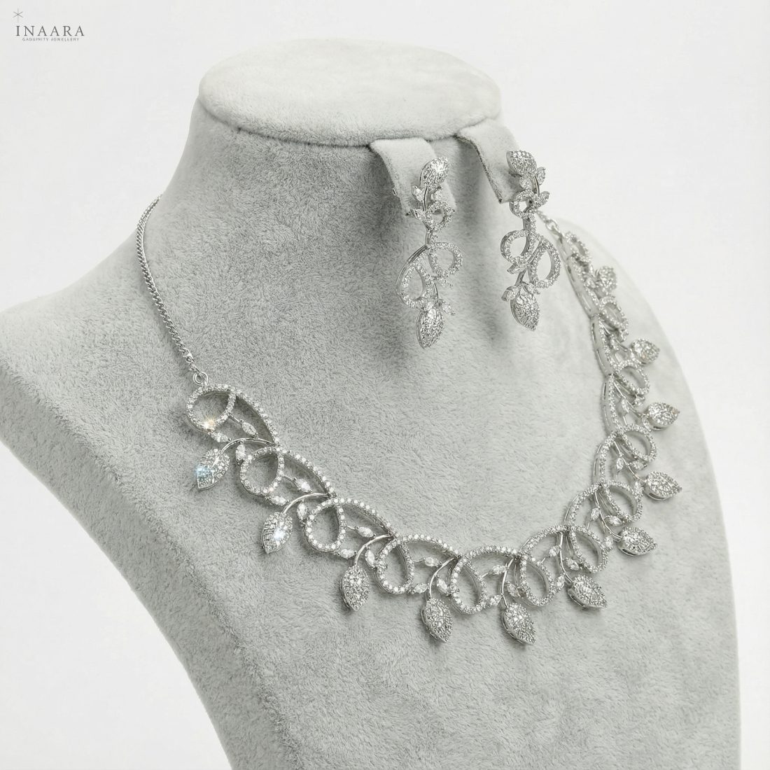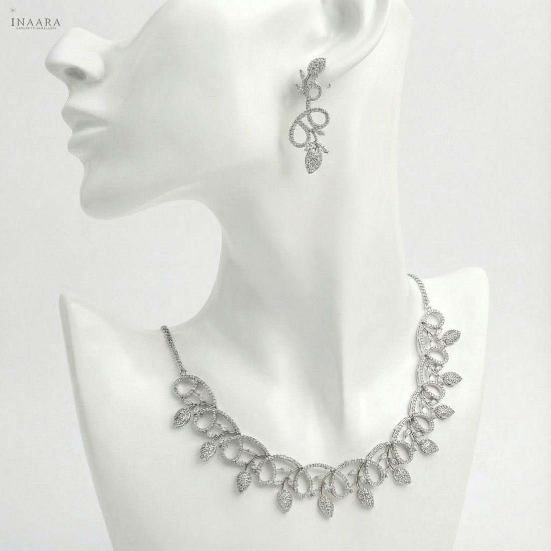 Unveil a world of ethereal radiance. This masterpiece features a cascading embrace of twisting vines paved with scintillating high-grade zircons, punctuated by luminous leaf-drop silhouettes that dance with the light. Masterfully crafted for the woman who embodies grace, the intricate lattice design sits softly against the skin, creating a spellbinding aura of sophistication. This is not just jewelry; it is a whisper of timeless romance and absolute luxury. Adorn yourself in the magic you deserve.