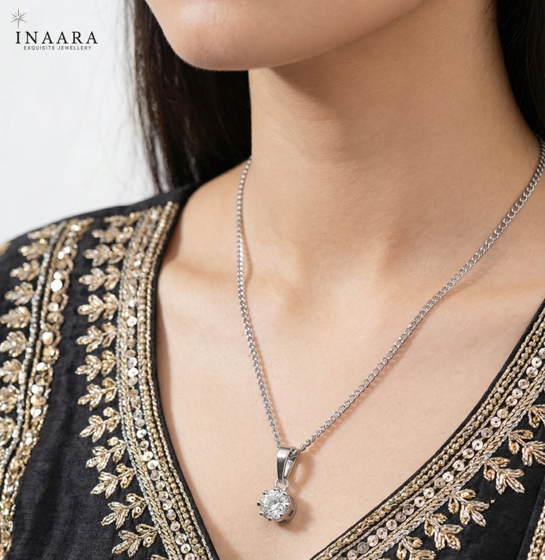 A celebration of pure elegance. This radiant solitaire pendant rests delicately on a refined chain, capturing light with a quiet, mesmerizing glow. Simple yet undeniably luxurious, it’s the kind of timeless piece a woman wears when she wants her beauty to speak softly — and still be remembered.